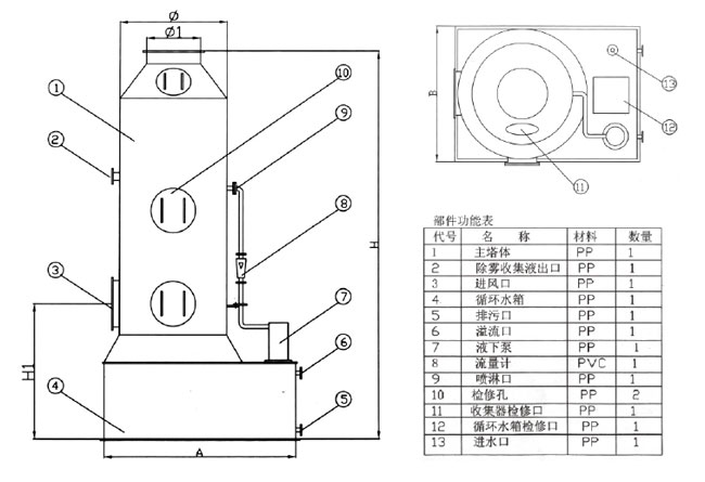 設備采用聚丙烯全塑制造,廣泛應用于化工、醫藥、石油等行業生產過程中的尾氣,廢氣的吸收和凈化處理,達標排放。
