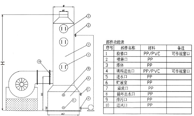 設備采用聚丙烯全塑制造,廣泛應用于化工、醫藥、石油等行業生產過程中的尾氣,廢氣的吸收和凈化處理,達標排放。